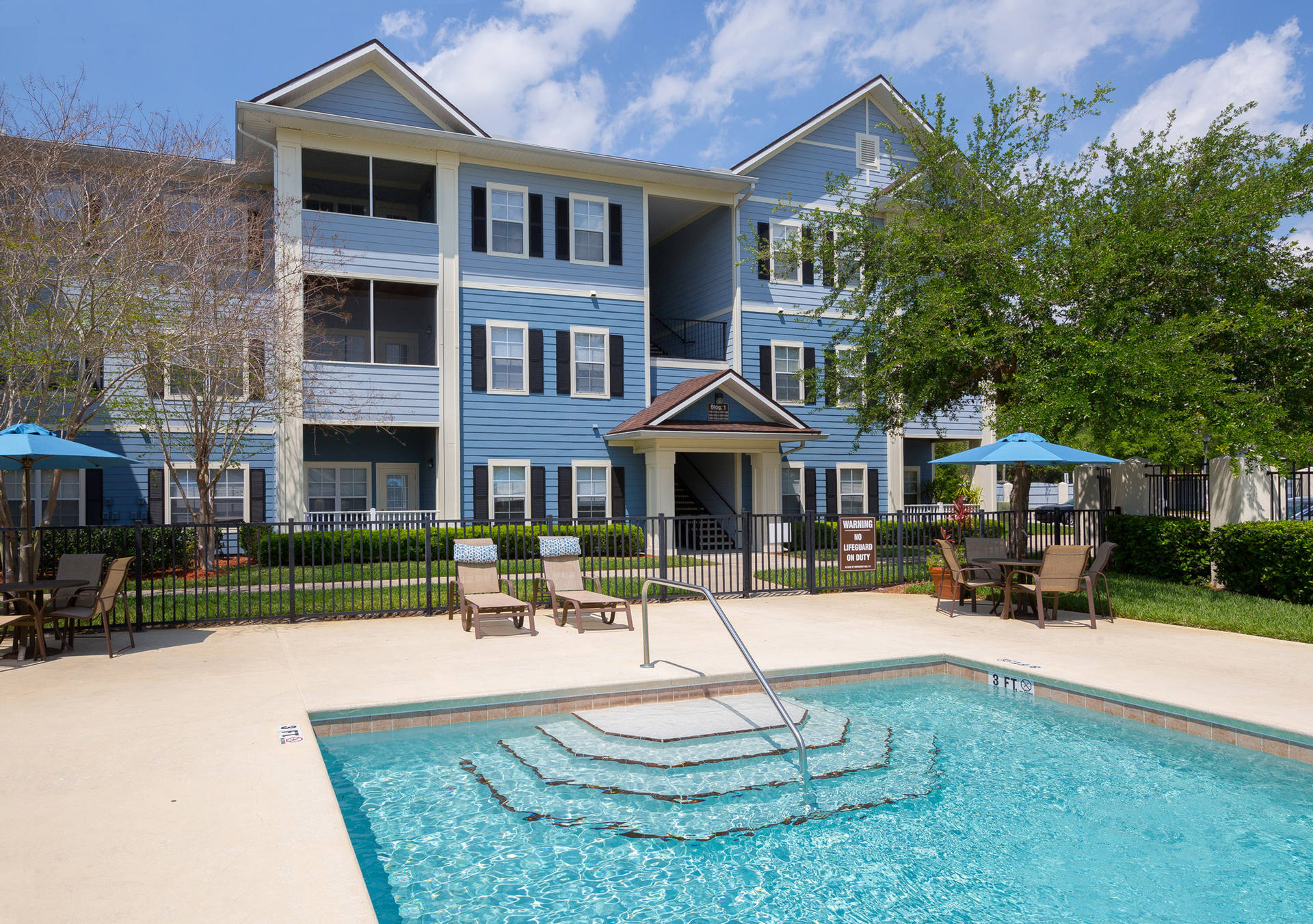 Community amenities include a fitness center, luxury pool, playground, lush landscaping, fountain and more.